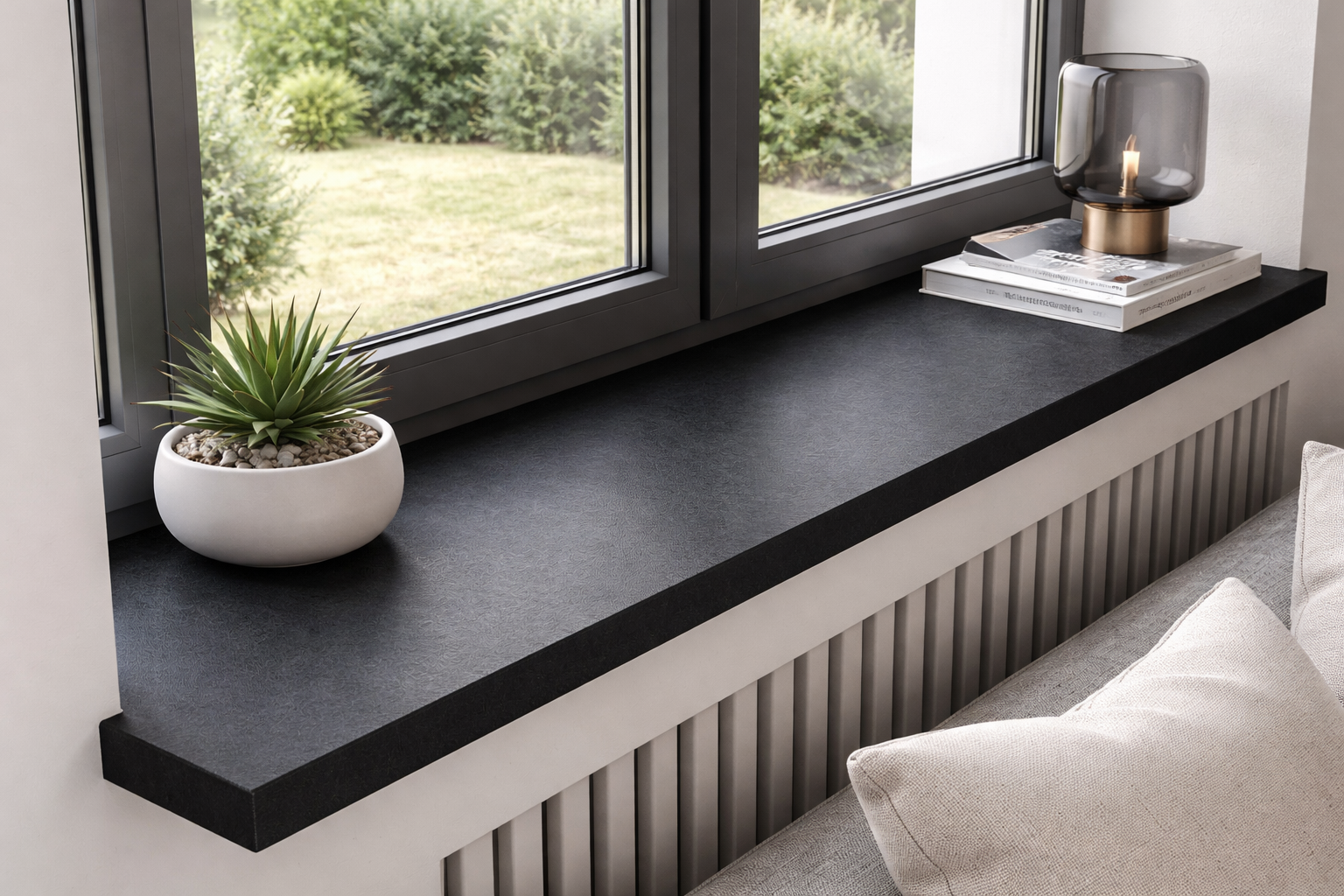 Parapet Dekton Sirius 20 mm to nowoczesne, eleganckie wykończenie okna w głębokiej czerni, które daje efekt premium, a jednocześnie pozostaje świetnym wyborem cenowym.